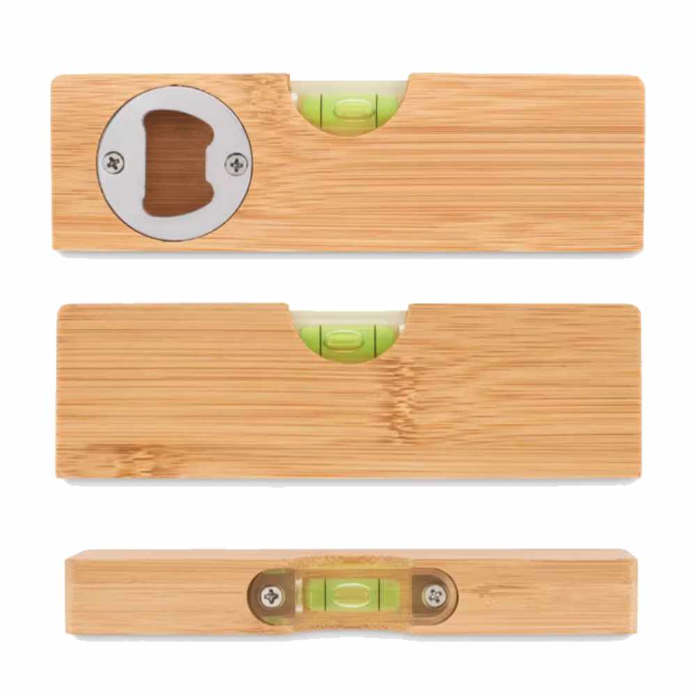 Hier bieten wir dir einen Designer Flaschenöffner mit einem Metallkern und zwei Holzplatten.