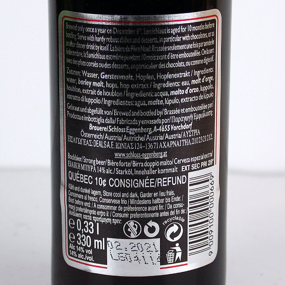 Das Samichlaus Bier wird jedes Jahr am 6. Dezember in Österreich gebraut und dann über 10 Monate gelagert, bevor es abgefüllt wird. Das Samichlaus hat einen Stamwürzegehalt von 32° und einen Alkoholgehalt von 14%, somit ist es eines der stärksten Biere der Welt. "Samichlaus" ist die Schweizer Bezeichnung für Sankt Nikolaus.